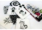 Šustící, černobílý, závěsný polštářek vyrobený ze 100% BIO bavlněného plátna určený pro děti do 3 let.
