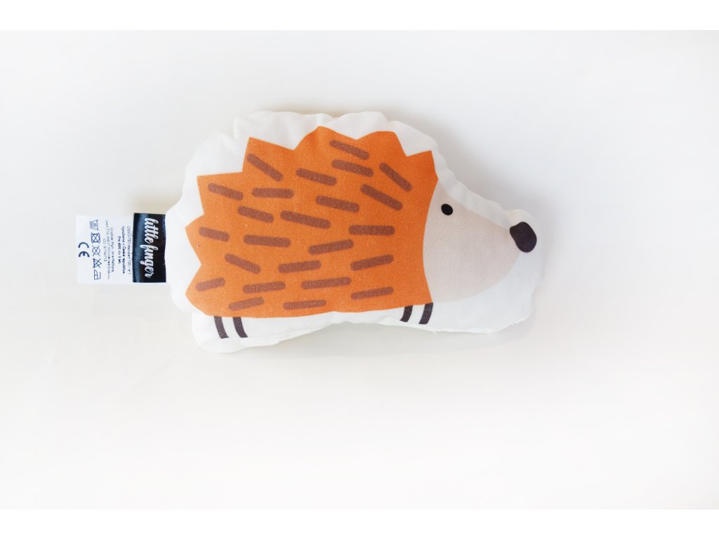 Polštářky Můj kamarád ježek je vyroben ze 100% bavlněného plátna, látka dovoz z Anglie s certifikací Global Organic Textile Standard pro děti do 3 let. Vnitřní výplň tvoří antialergenní duté vlákno (100% PES). Velikost ježka: 21 × 13 cm